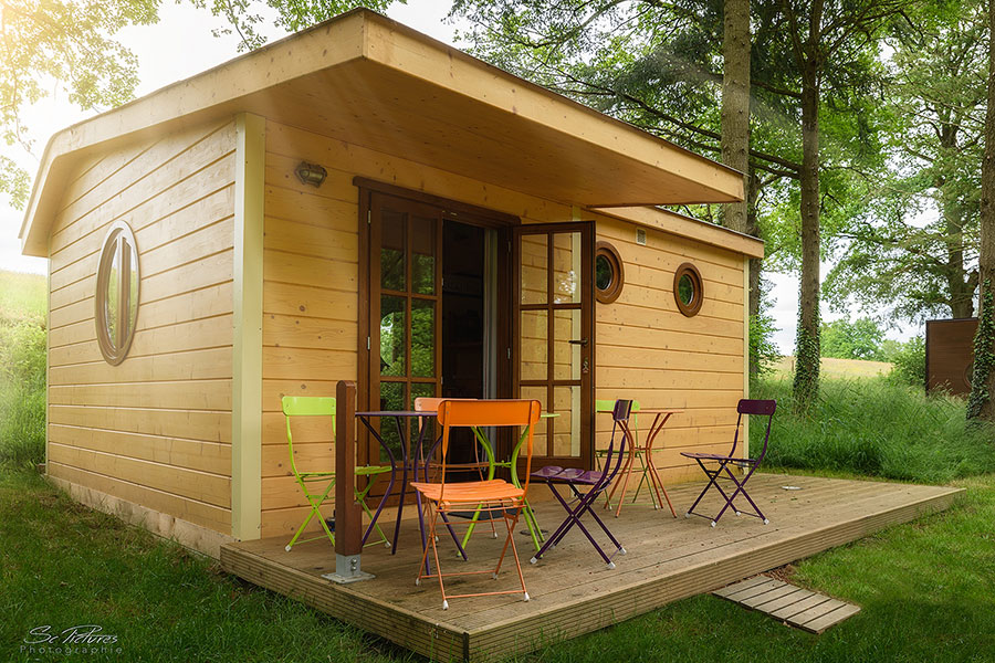 Véritable petite maison en bois de 27 m², la Cabane de Sam est équipée pour accueillir jusqu’à 6 personnes.