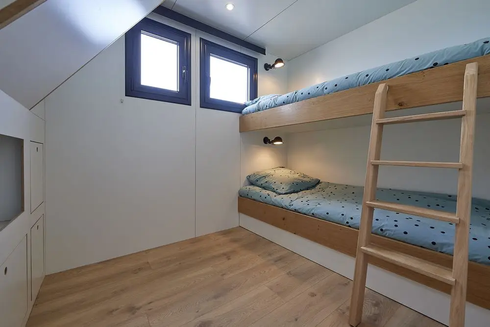 • Une cabine d’environ 5m² avec lit superposé de L80 cm et lit gigogne en partie basse, offrant la possibilité d’un couchage de L140 cm.