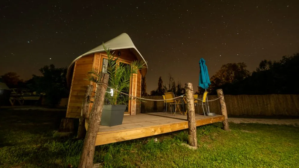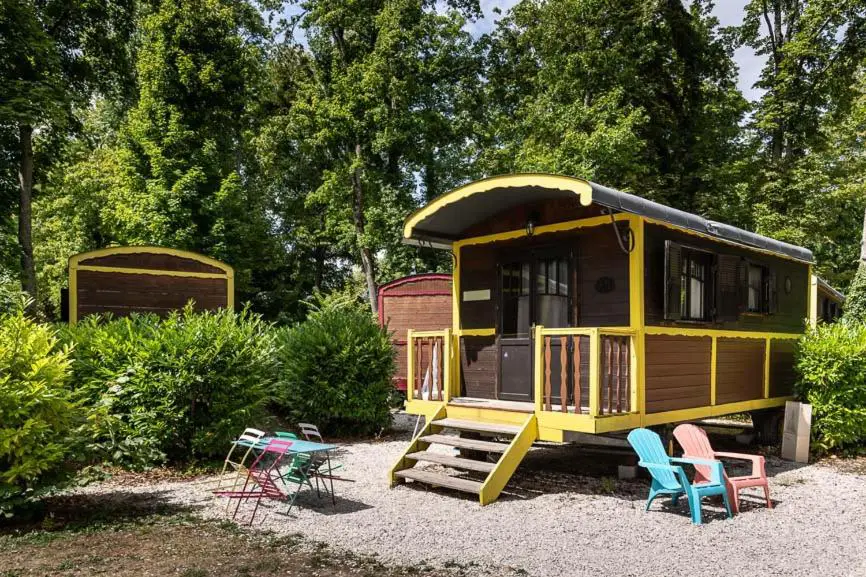 À Bar-sur-Aube, au cœur des vignobles de Champagne et au bord de la rivière Aube, ce camping original invite les familles à passer une nuit dans un univers plein d’imagination. Ici, on dort dans une roulotte colorée, une cabane magique, un carré d’étoiles ou encore une cabane de troll… de quoi faire briller les yeux des enfants dès l’arrivée.
