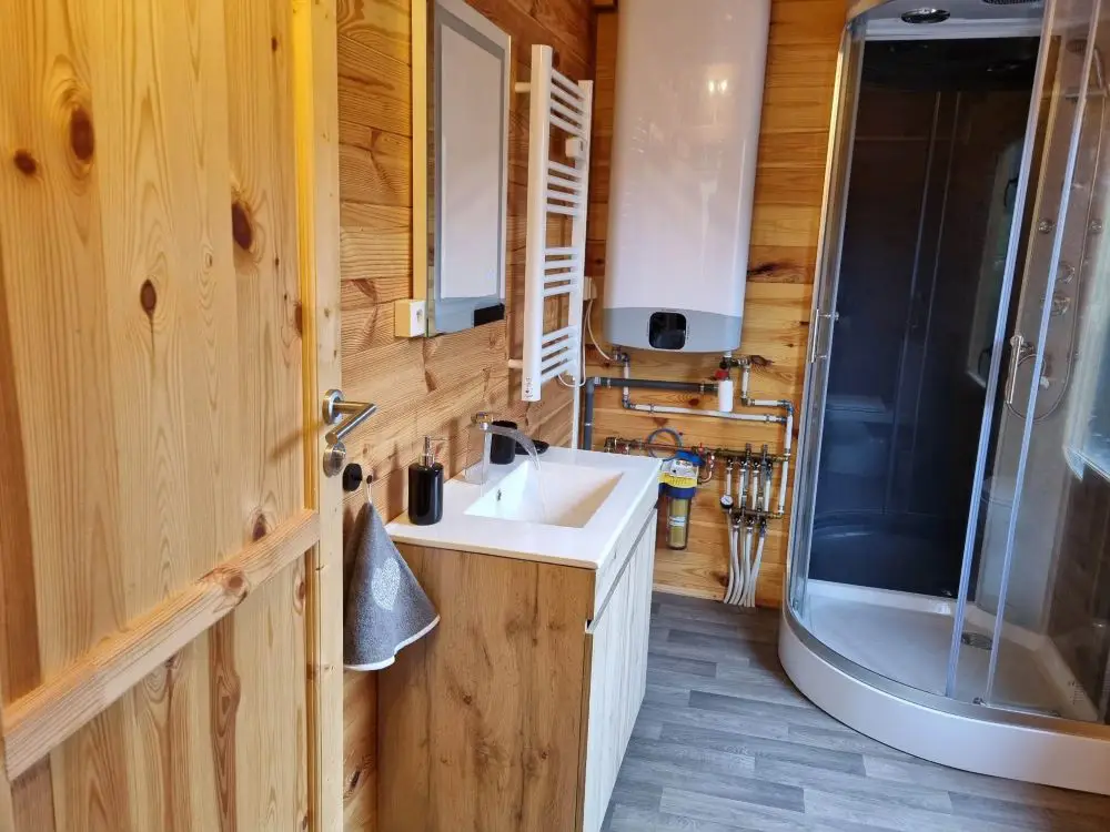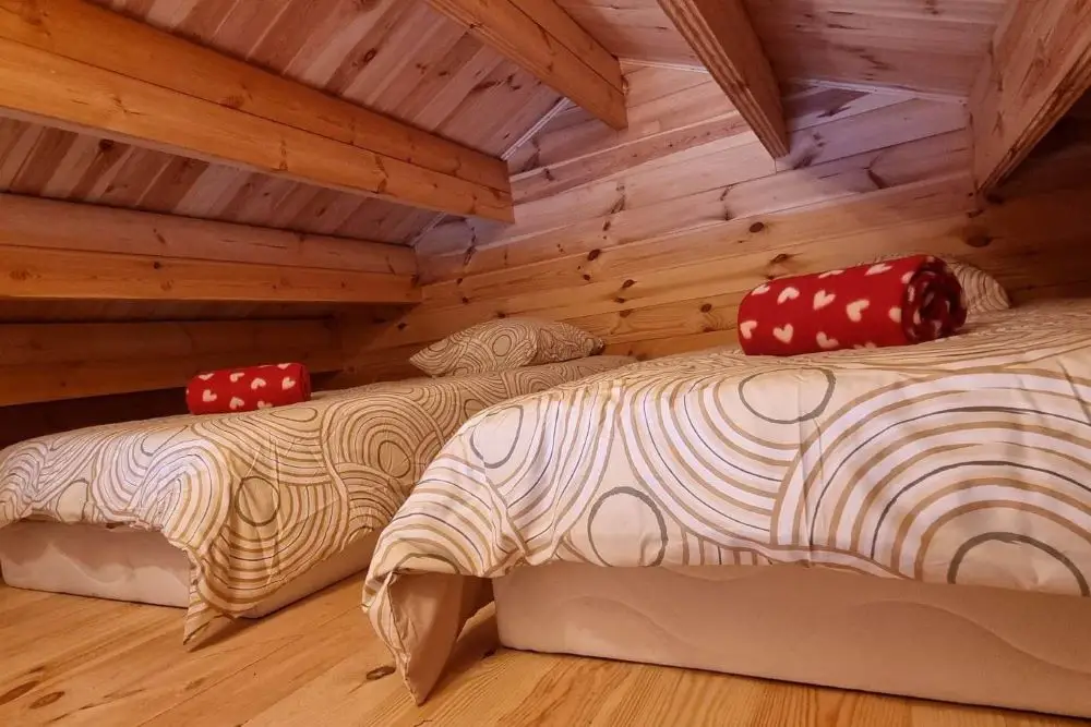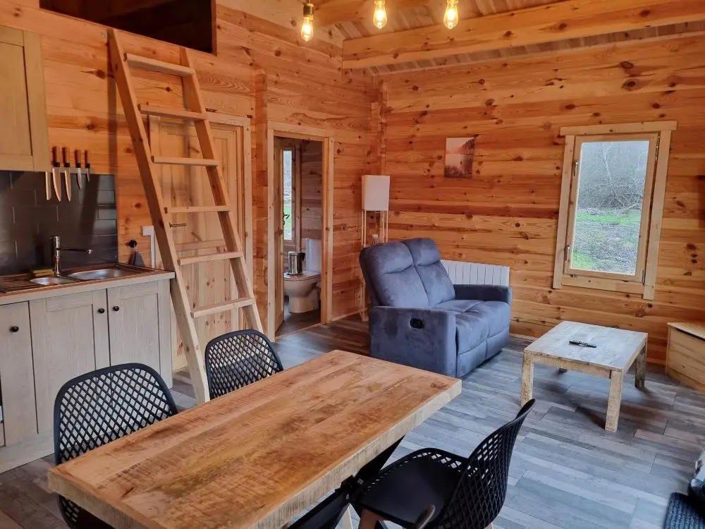 Elle dispose de tout le confort nécessaire pour passer un séjour en immersion avec la nature. Kitchenette, salon avec canapé et tv, salle de douche, toilettes et 2 chambres, idéale pour 2 à 4 personnes.