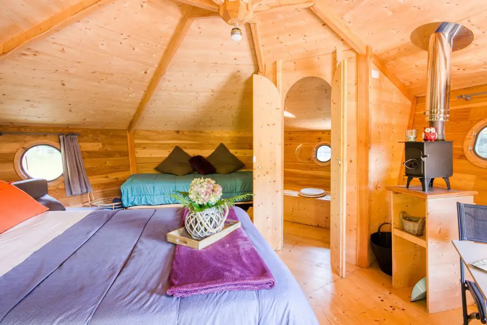 Au milieu d’une forêt, avec étang privé, ruisseau et cascade, deux cabanes sur l’eau vous attendent pour un séjour en parfaite harmonie avec la nature. Le Nid pour deux personnes et l’ Ar Gaouenn pour 4 personnes sont des cabanes flottantes accessibles uniquement en barque. Jouez les Robinson avec du confort, c’est possible grâce à des installations adaptées - toilettes sèches, réserve d’eau de 10L, panneaux solaires/batteries - et même un poêle à bois pour profiter de ce cadre idyllique en toute saison. Au moulin de Trévelo, tout est fait pour vous permettre de vous ressourcer et vous déconnecter du quotidien. Des paniers repas vous sont proposés pour profiter pleinement du site sans avoir à vous déplacer, alors laisser vous tenter par un apero gourmand ou un goûter sucré sur la terrasse de votre cabane.