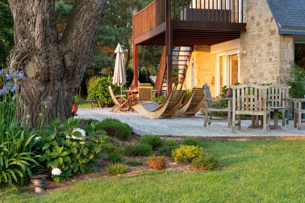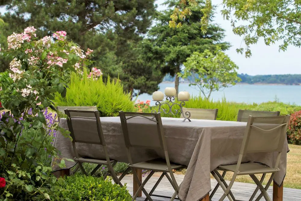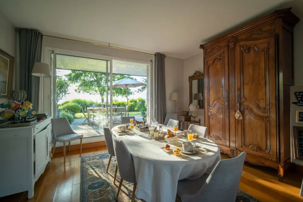 Le petit déjeuner est servi face au golfe, dans un salon chaleureux ou sur la terrasse si le temps le permet. Un vaste jardin arboré, bordé par le GR34, donne un accès direct au golfe et vous pourrez profiter d’un kayak pour découvrir le littoral depuis l’eau, une vue différente et si apaisante.