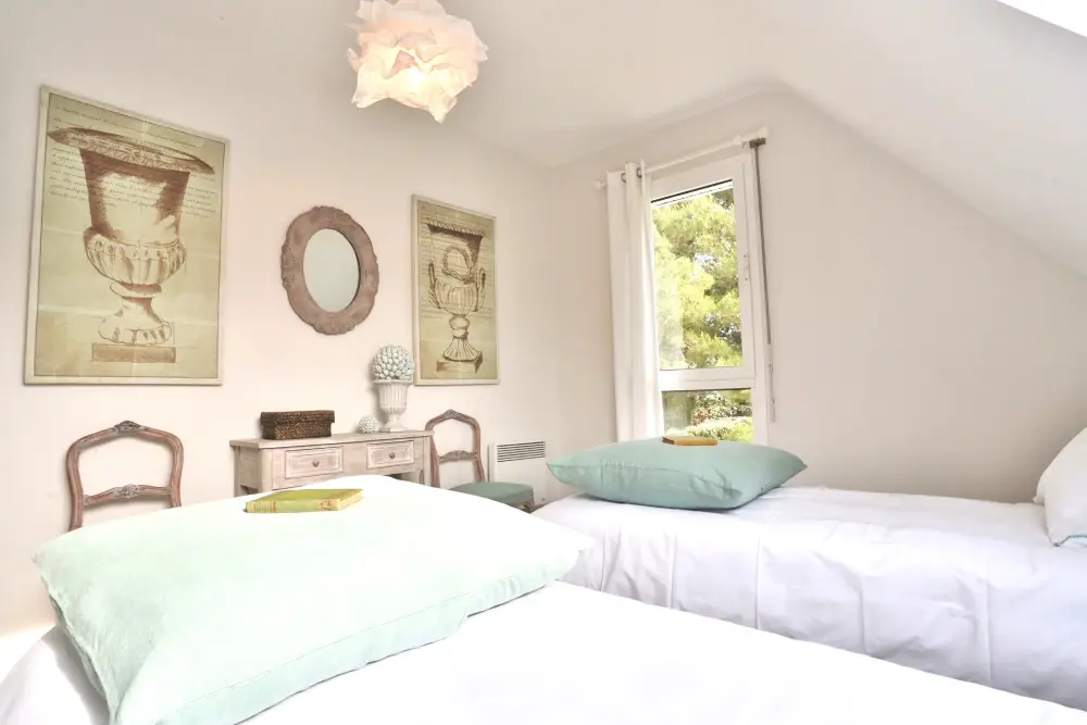 Ici, vous pourrez poser vos valises dans un havre de paix et profiter du cadre privilégié de la maison d’Anne et Olivier. Ils ont aménagé dans leur maison familiale 2 chambres et une suite pour 4 personnes, toutes aux couleurs subtiles et contemporaines de la mer et orientées plein Est avec vue sur le golfe.