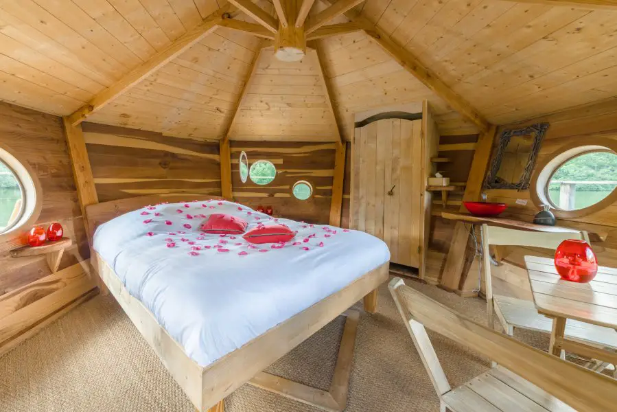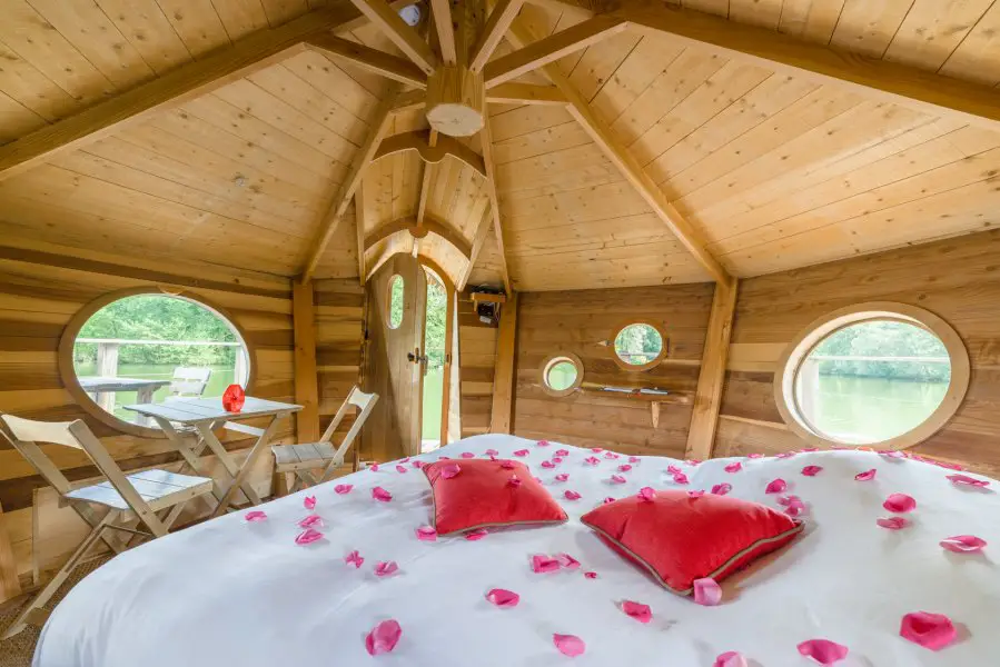 La cabane Corail vous accueille pour une parenthèse insolite. Accessible uniquement en barque, vous passerez un moment privilégié dans cette cabane pourvue d'électrcité et d'une réserve d'eau, qui s'intègre parfaitement au cadre naturel des grands lacs de l'Est de la France. Avec ses 22m2 dont 10m2 de terrasse, c'est un cocon naturel idyllique pour les amoureux.