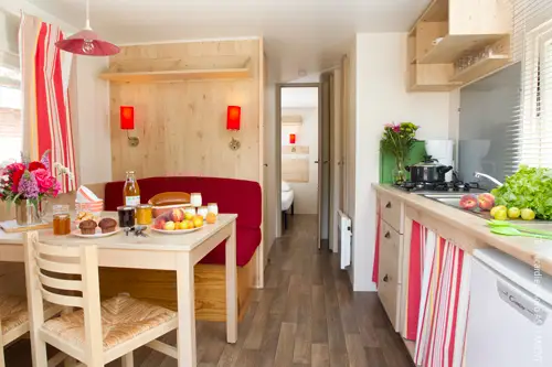 Les roulottes de 20m2 pour 2 adultes et 2 enfants sont disposées le long de la rivière la Bresle et près du manège de chevaux. Elles sont fonctionnelles et bien entretenues.