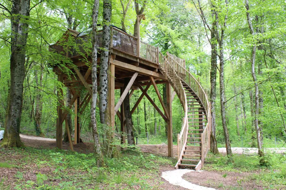 La Cabane féerique spa de 2 à 5 pers est un château dans les arbres à 7m du sol, accessible par un escalier.