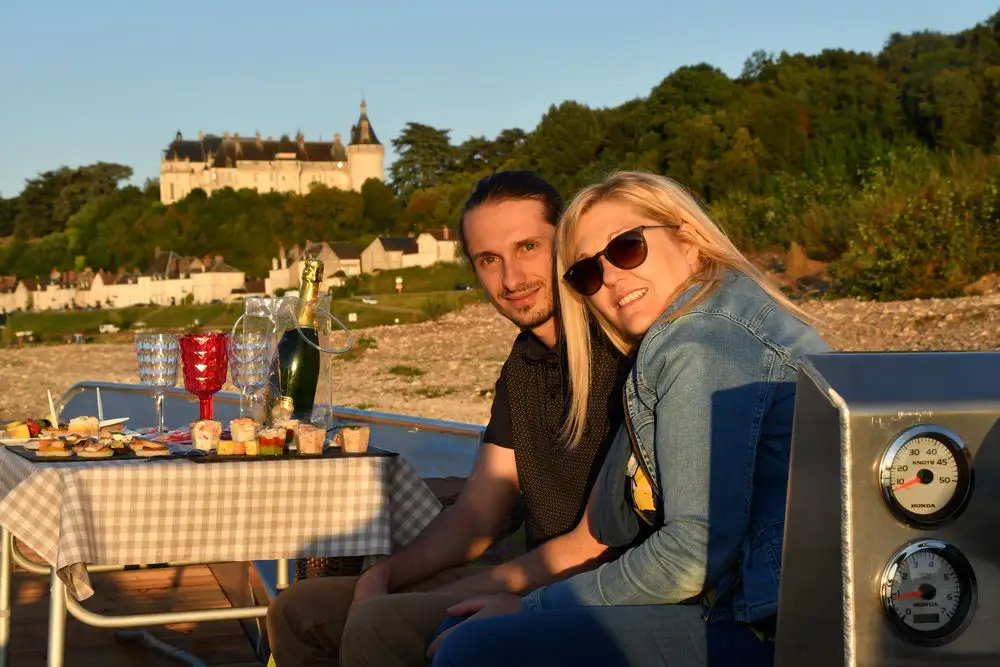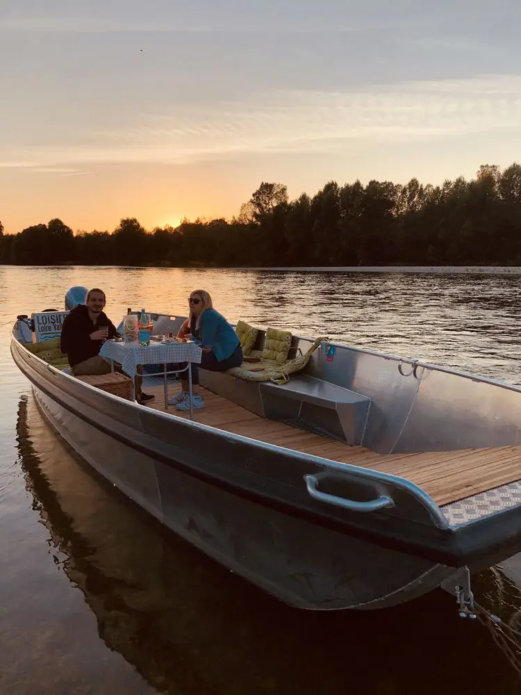 Philippe, fils de pêcheur de Loire, vous guidera sur le bateau à fond plat en aluminium qui permet une navigation facile et pratique pour accéder à toutes les rives et offre l’opportunité de départ de petits villages. Il suffit juste de choisir son créneau horaire, une balade en bateau le midi ou encore au coucher du soleil pour profiter des magnifiques couleurs et reflets de la Loire. Cette expérience totalement slow-life peut se vivre à 2, en famille ou encore avec des amis, puisque le bateau peut accueillir jusqu’à 10 personnes. Succès garanti pour l’#apérobato, cette balade avec apéritif de produits gourmands, vins d’AOC Touraine ou AOC Cheverny, la terrine de poissons de Loire, le fromage de chèvre d’AOC Selles-sur-Cher… Une balade originale qui vous permettra d’admirer les châteaux de la Loire autrement.