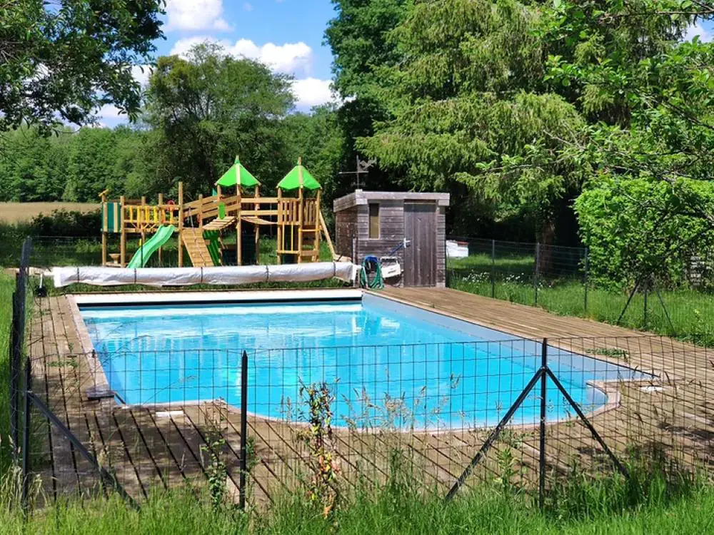 Le vaste jardin accessible par un petit pont de bois, abrite une piscine privée non chauffée (ouverte de juin à septembre), des transats pour se détendre et une aire de jeux qui plaira aux enfants.