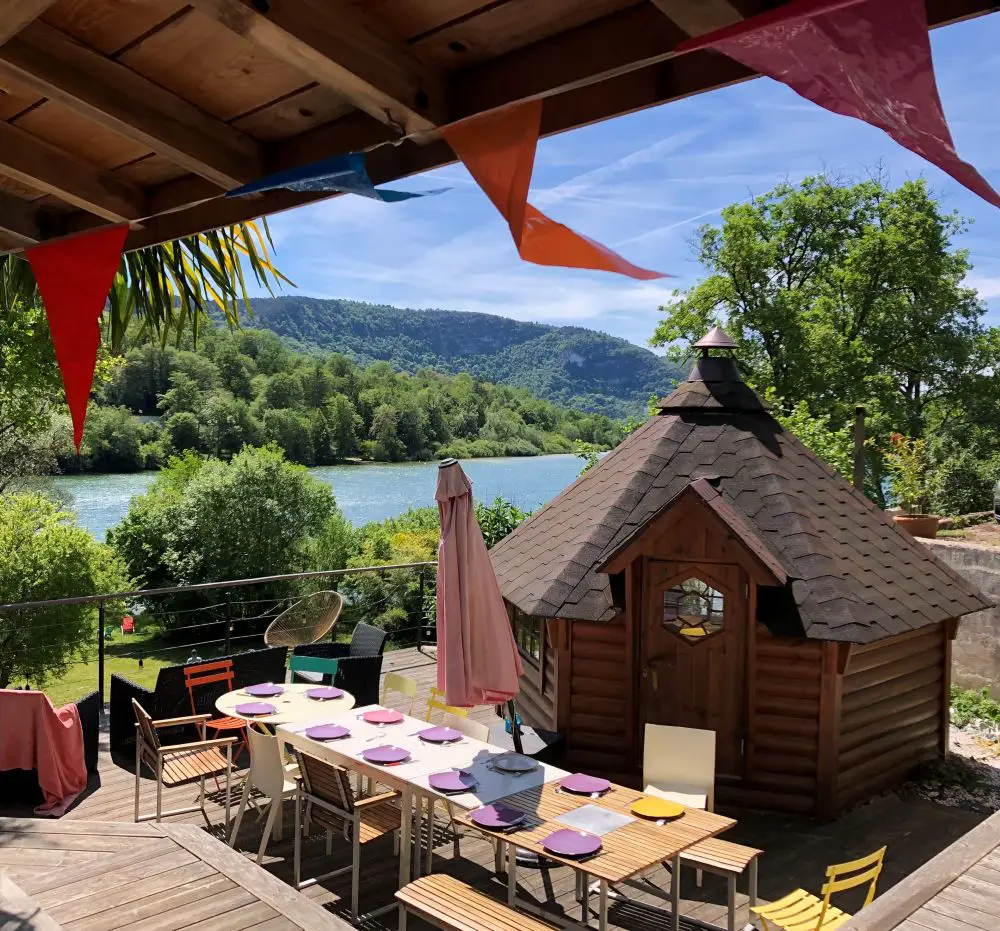 C’est dans cet esprit qu’a été pensé ce gîte chaleureux au bord du lac Chambod, alors si vous rêvez d’une location au bord de l’eau, tout près de l’île Chambod, bienvenue au Ponton, une location de charme, un peu bohème qui surplombe les eaux paisibles de l’Ain. Ici la rivière se trouve entre deux barrages éloignés de 3kms, formant ainsi un lac. Au Ponton, vous aurez le privilège d’avoir un accès direct au lac, aux eaux courantes et sans moustiques.