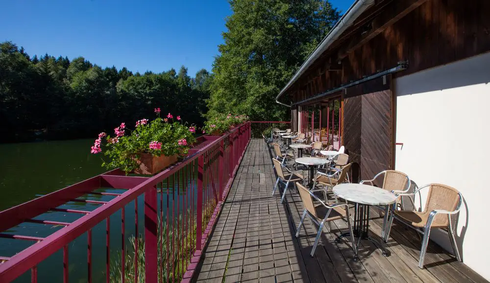 Sur place, n'hésitez pas à savourer votre café depuis la terrasse surplombant le lac : moment de privilège assuré !