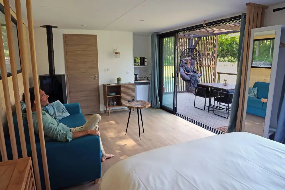 Equipés de couchages, d’eau, de sanitaires privés et de chauffage, vous passerez un moment confortablement installés avec vue panoramique sur l’étang.