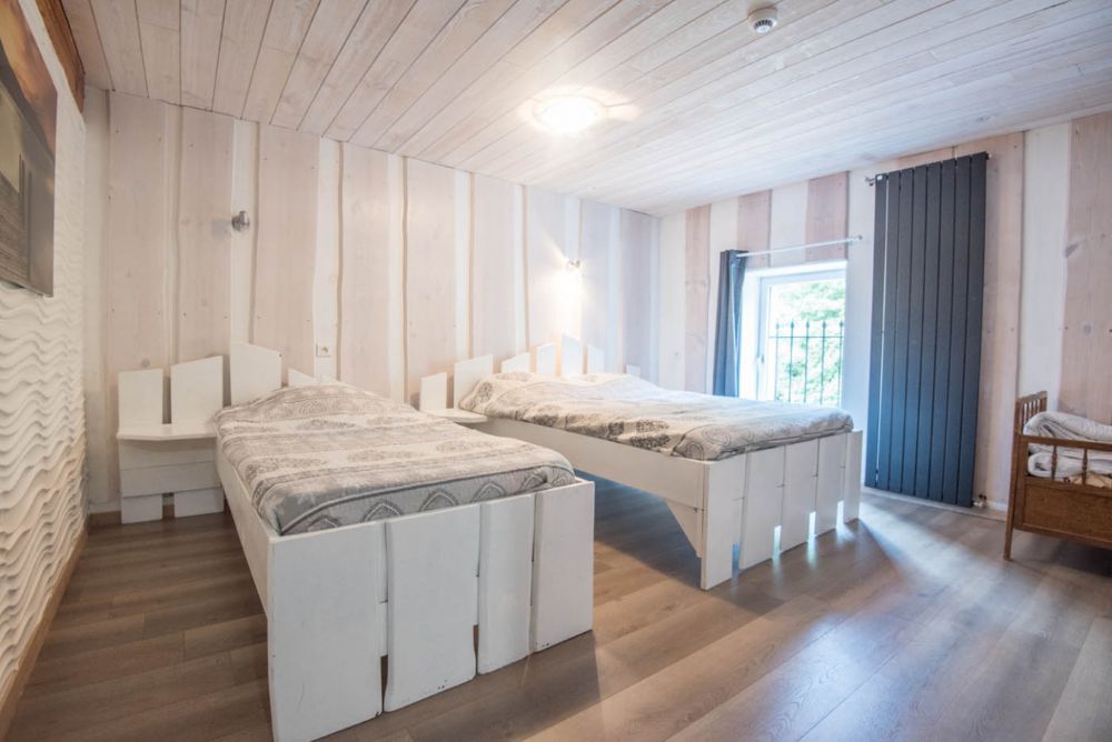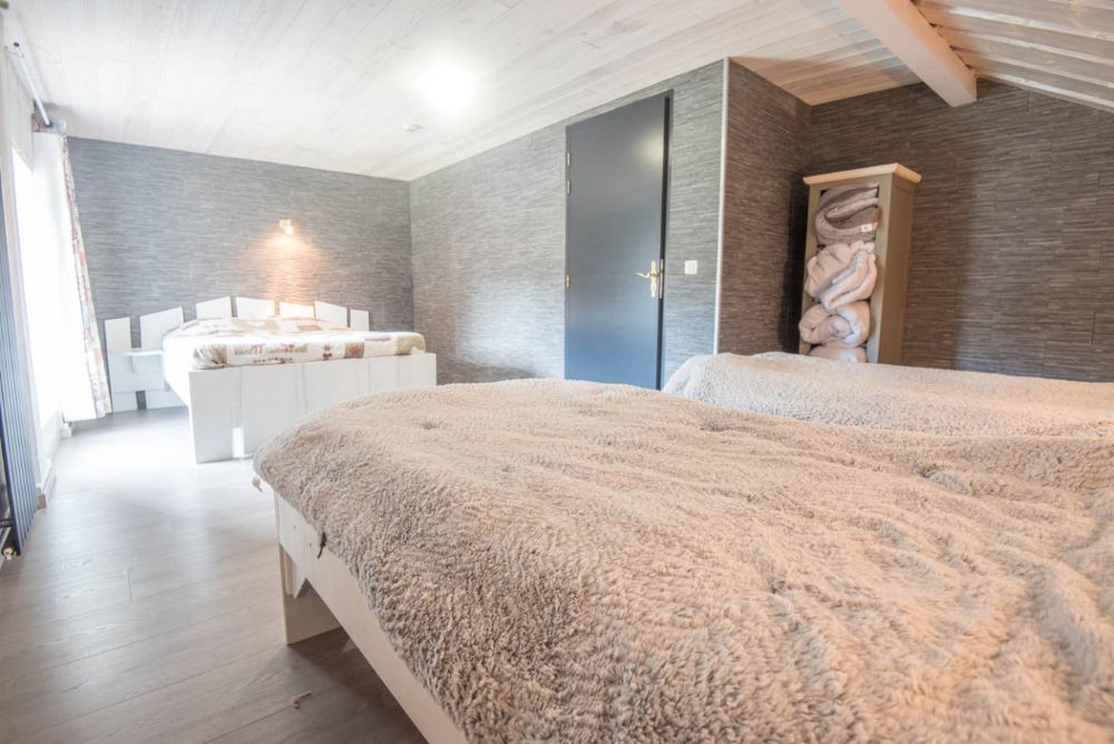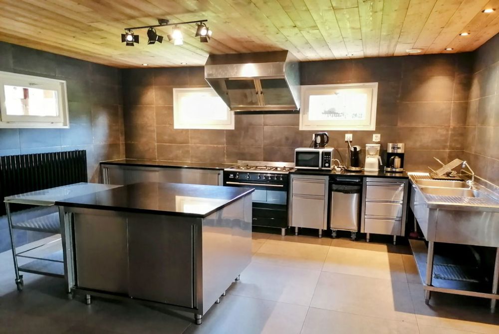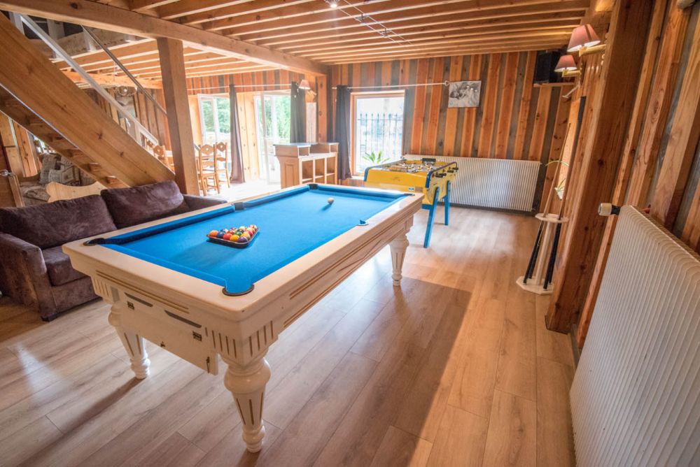 Sur trois niveaux, il offre 8 chambres, 4 salles d’eau, une vaste pièce de vie exposée plein sud avec cheminée, bar, billard et baby-foot, ainsi qu’une cuisine professionnelle pour préparer vos repas de groupe.
