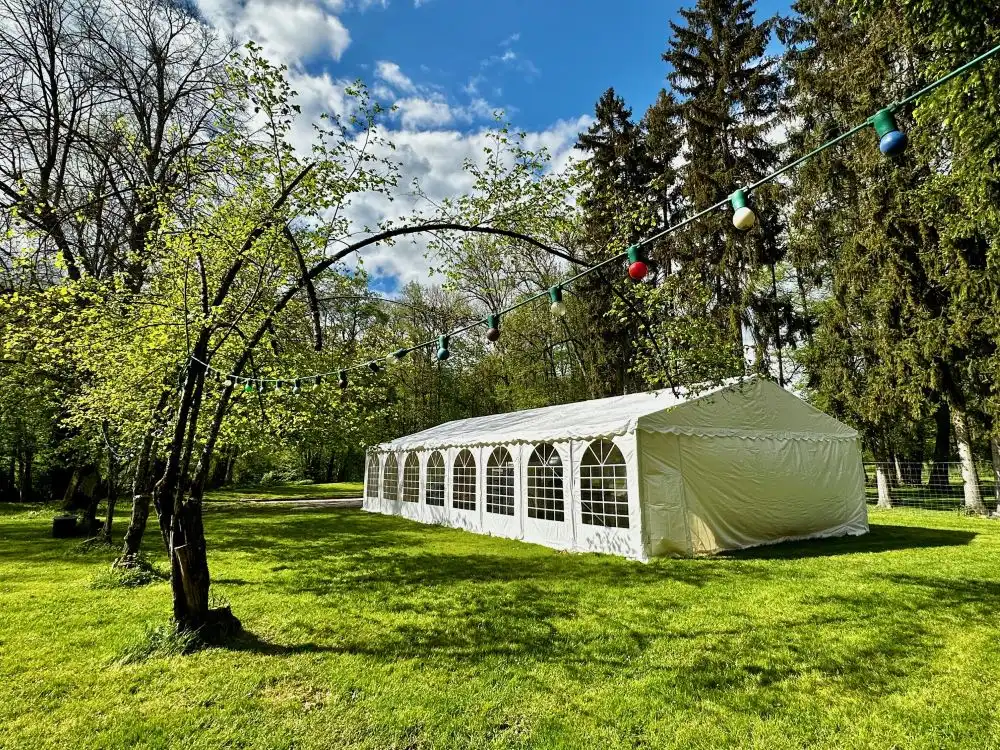 - Chapiteau pouvant accueillir jusqu’à 100 personnes assises avec piste de danse