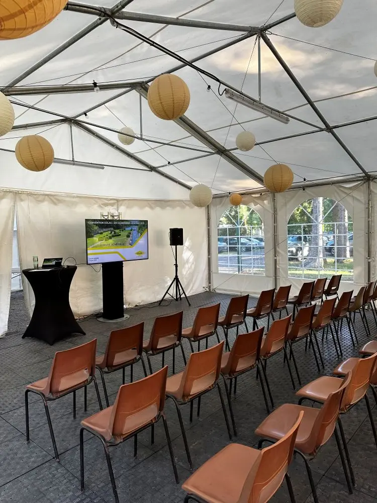 - Sous chapiteau : jusqu’à 100 personnes assises et 120 personnes debout