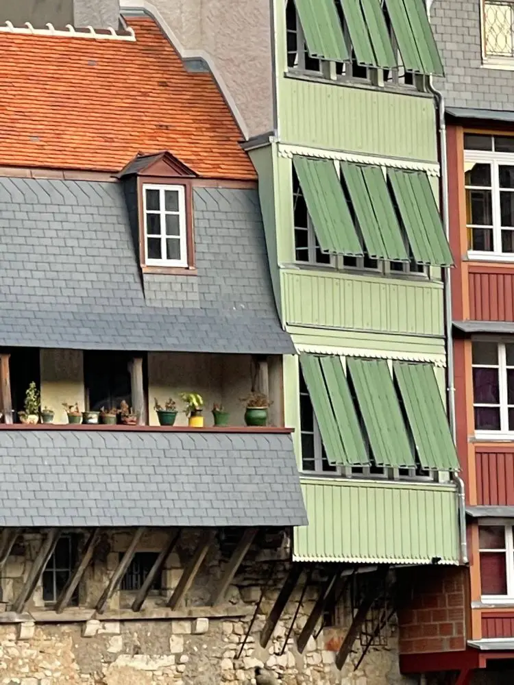 Quel cadre ! Et pourtant nous sommes en plein centre ville d’Argenton sur Creuse, dans des maisons comme suspendues au dessus de la rivière.