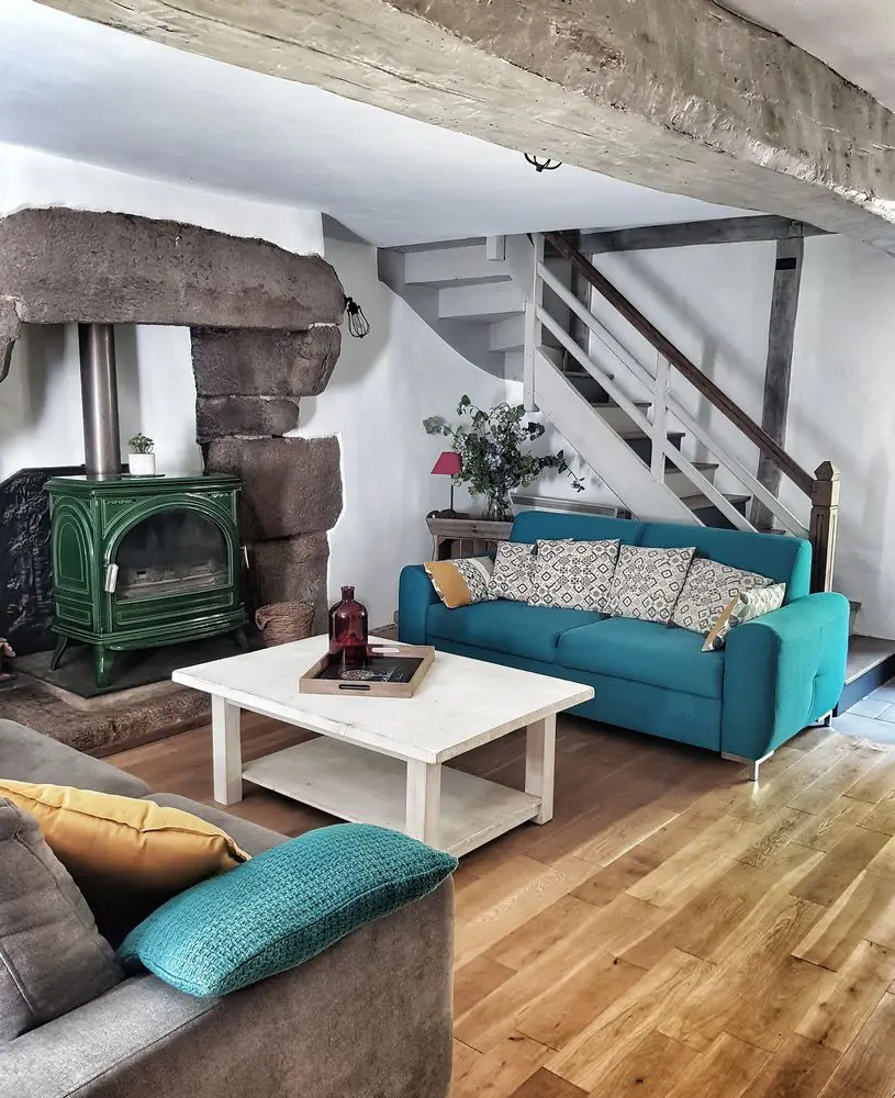 Composé de deux étages, le gîte rénové avec un goût exquis a su conserver un charme authentique. Au RDC une pièce cathédrale accueille la cuisine et le séjour, un salon chaleureux avec sa cheminée d’époque abrite un poêle de grande qualité pour vous garantir des soirées bien au chaud en toute saison. Le 1er étage accueille une grande chambre avec 4 couchages modulables et une salle de bain (baignoire et douche). La suite parentale est au second.