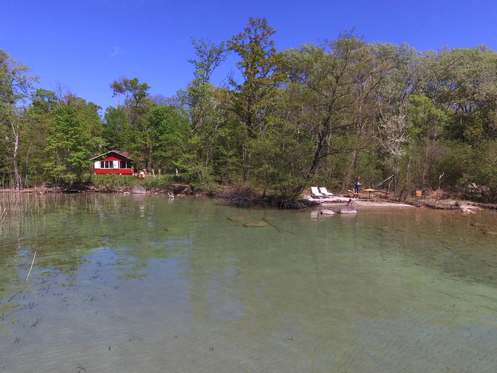 Nul doute que j’ai trouvé un cocon idyllique sur les rives du lac de Neuchâtel, le plus grand lac naturel entièrement en Suisse… Une cabane inspirante dans laquelle j’ai envie de me ressourcer été comme hiver, une jolie cabane d’un rouge suédois au bord du lac, encore resté sauvage sur cette partie toute proche de la réserve de la Grande Cariçaie. C’est l’endroit parfait pour les amoureux de la nature en quête d’une adresse confidentielle cosy et chaleureuse, idéale pour les ornithologues qui peuvent capturer l’image des oiseaux endémiques ou des oiseaux migrateurs. A vos jumelles et appareils photos ! Un petit chemin vous conduit sur une plage privée et là, un chenal qui serpente entre les roseaux, vous permet de vous baigner en toute discrétion dans les eaux limpides du lac. Une adresse confidentielle et secrète, un coin de nature qu’on a envie de garder rien que pour soi...une impression d'être seul au monde.