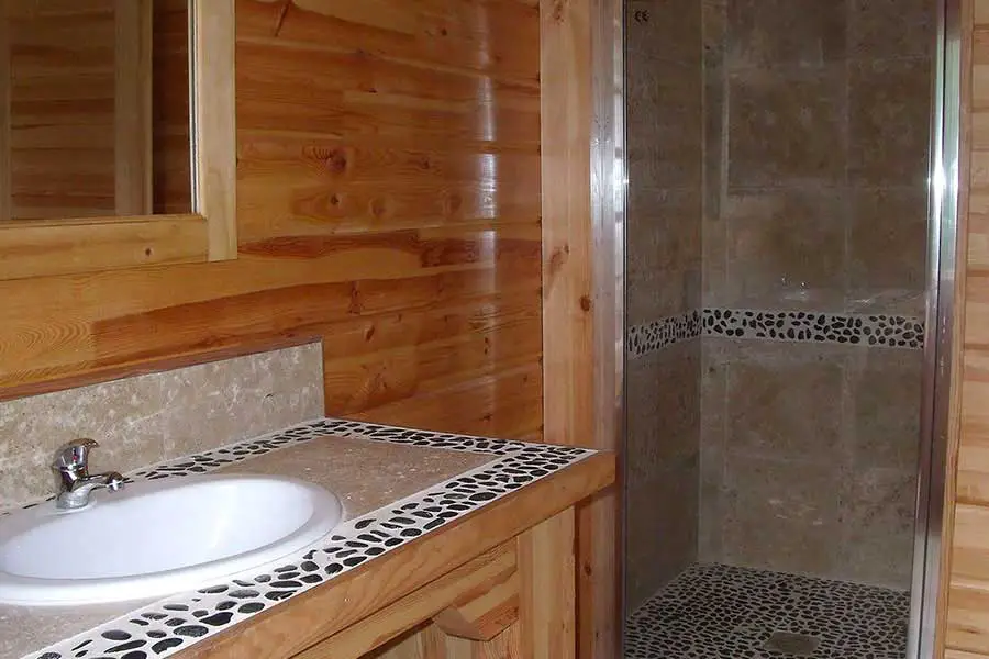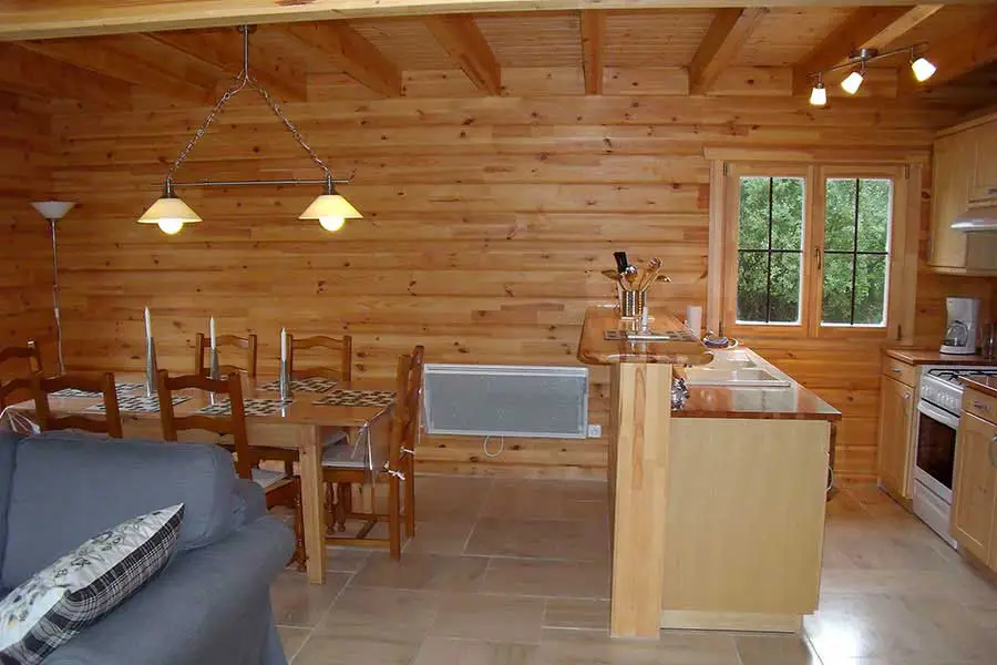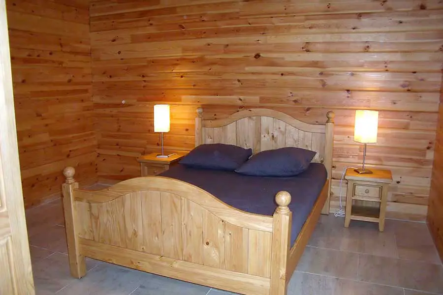 Chalets Bleuet ou Chalet Lepetit pour 8 personnes : 90 m² habitables comprenant en RDC : entrée, vaste pièce à vivre avec cuisine à l’américaine, 1 chambre (lit 2 pers.), salle d’eau, toilettes. A l’étage : mezzanine (convertible 2 pers.), 2 chambres (2×2 lits d’une pers.) et salle d’eau avec WC.