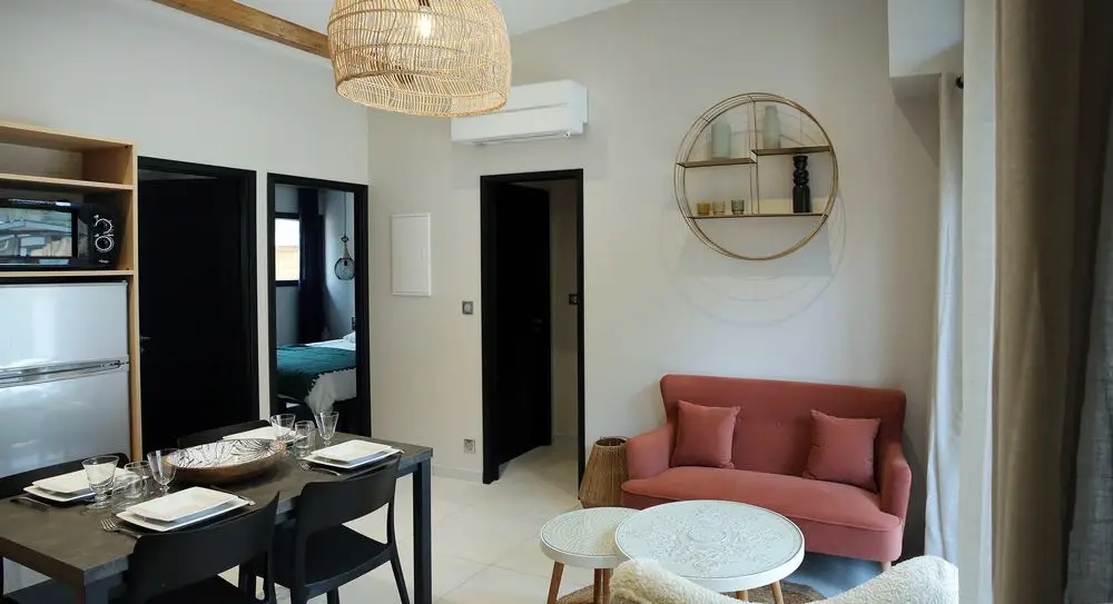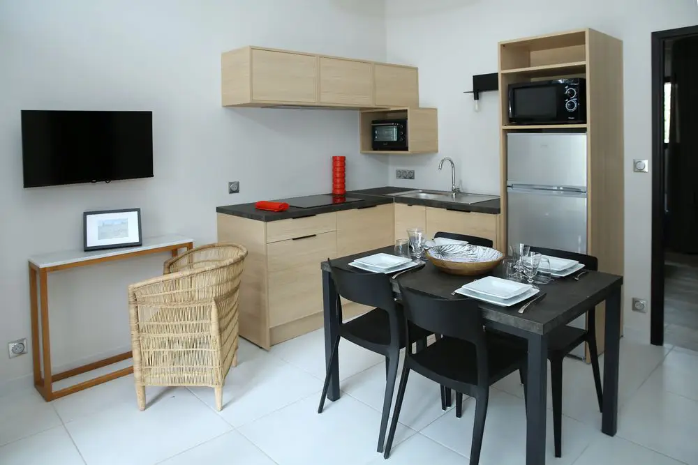 Conçus pour 2 ou 4 personnes, chacun dispose d’un espace cuisine moderne et bien équipée (plaque 3 feux vitro céramique, lave-vaisselle, four et four micro-onde, réfrigérateur congélateur, cafetière, machine à laver le linge et matériel de repassage), d’un salon avec TV, de une ou deux chambres, d’une salle de bain avec douche à l’italienne et d’une terrasse privative avec pour certains un spa privatif haut de gamme.