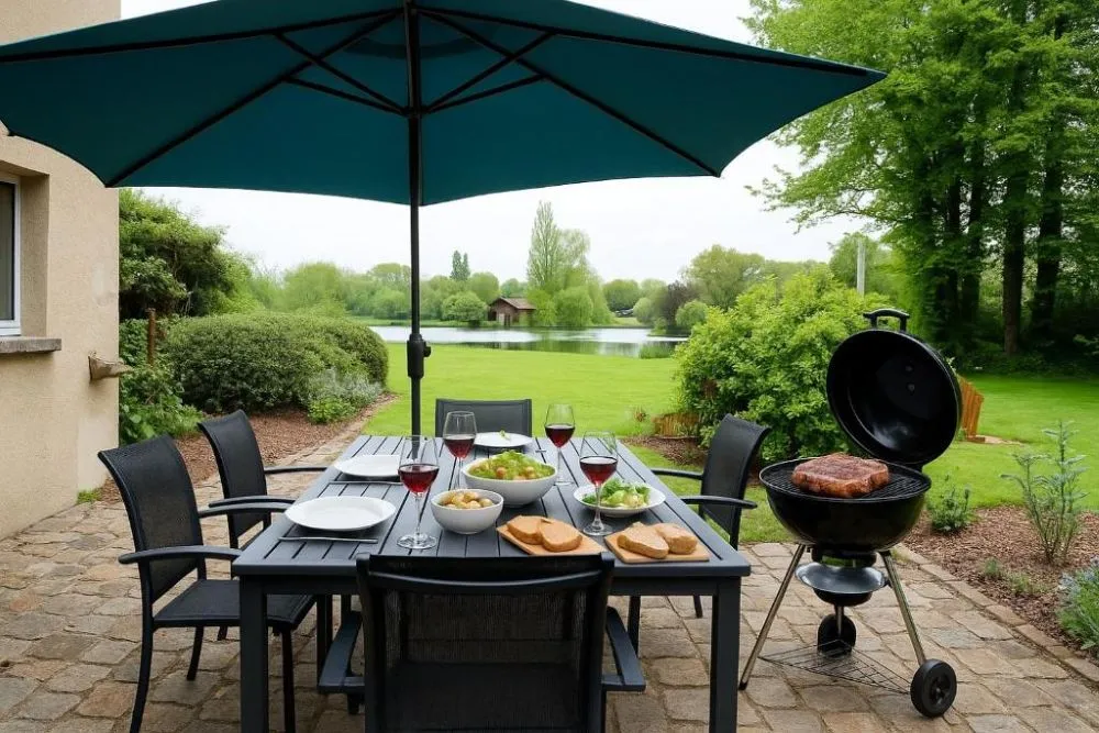 Le gîte offre une surface de 130 m² et peut accueillir jusqu’à 6 personnes. Il dispose d’espaces confortables et bien équipés, pensés pour des séjours en famille ou entre amis, avec une ouverture directe sur l’extérieur et une vue dégagée sur l’étang.