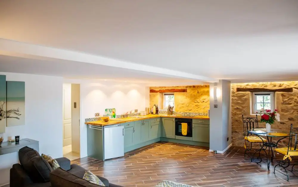 Deux gîtes classés 3 étoiles - Le gîte des Rosiers et le gîte des Magnolias aménagés dans une maison en pierre rénovée, à proximité immédiate d’une piscine couverte et chauffée (ouverte de mai à septembre), et d’un espace de jeux avec boulodrome, baby foot et balançoire.
