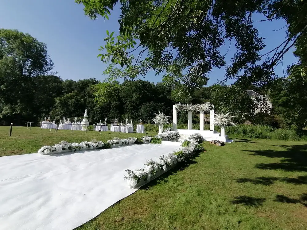 Vous pourrez organiser votre vin d'honneur et/ou votre cérémonie des vœux au milieu des arbres fruitiers dans le verger, offrant une vue exceptionnelle sur le château privé du 19ème siècle de style Renaissance pour des photos mémorables.
