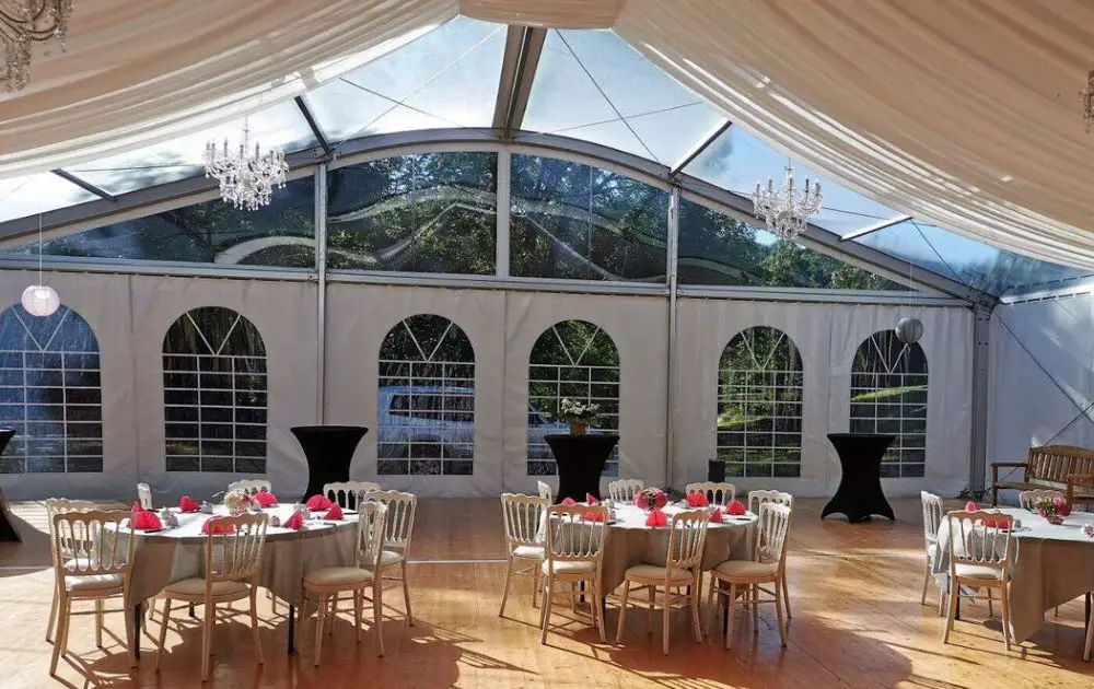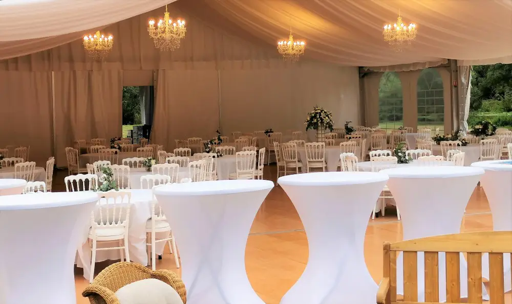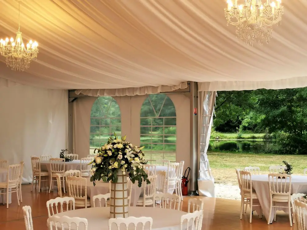 Pour votre soirée et votre banquet, vous disposez d'un élégant chapiteau de 300 m² pouvant accueillir entre 50 et 250 personnes.