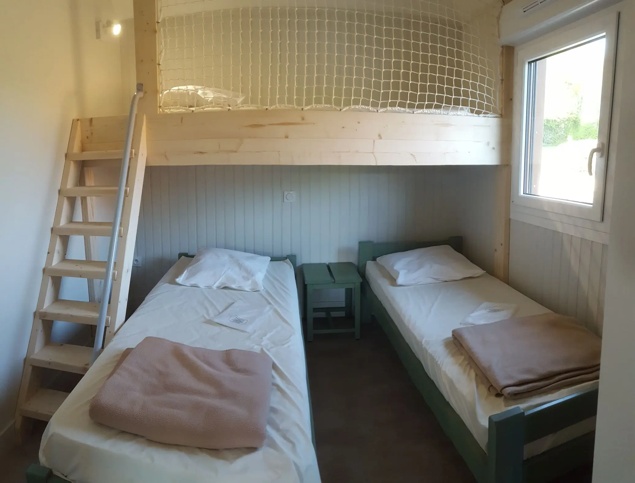 Bien équipés, les chalets qui peuvent accueillir jusqu' à 7 personnes, disposent d’un séjour avec coin cuisine (lave-vaisselle, mini four, micro-ondes), d’un convertible 2 personnes, d’une salle d’eau, de toilettes, d’une chambre avec 1 lit 2 personnes, d’une chambre avec 3 lits 1 personne dont un hauteur, d’une télé et d’un barbecue. Ils sont accessibles aux personnes à mobilité réduite.