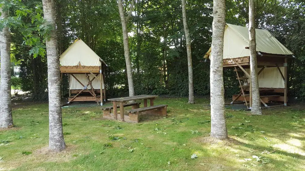 Vous trouverez également 4 tentes amazones et 2 tentes bivouac sur pilotis, ainsi qu’un espace camping-cars équipé d’une borne.