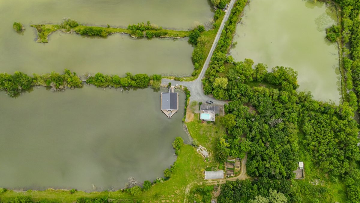 La maison, véritable habitation flottante de 120 m² environ construite sur une plateforme de 200 m² offre une belle terrasse sur l’eau. Bien que flottante, la maison est très stable. La piscine chauffée privée avec terrasse équipée de bains de soleil domine l’étang et vous offre un cadre privilégié juste pour vous. Elle vous est entièrement réservée. En service de début avril à fin septembre.