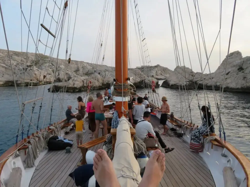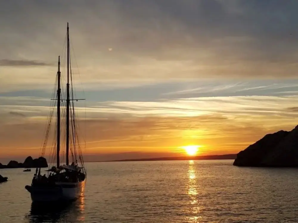 Découvrez le magnifique paysage qu'offre les calanques de Marseille sous la lumière du coucher du soleil. Partez depuis le Vieux-Port, naviguez ensuite dans la rade et profitez d'une escale dans le charmant Archipel du Frioul où vous aurez l'occasion rêvée de vous baigner.