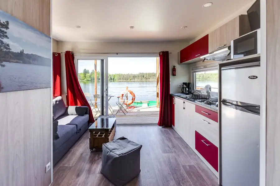 Après quelques minutes de navigation, vous aborderez votre maison flottante ancrée dans un des endroits le plus sauvage et préservé du grand étang. Un ponton d’accostage vous facilitera l’accès à la grande terrasse avant. Vos bagages vont très vite vous être livrés, vous êtes détendus et prêts à vivre un séjour inoubliable dans votre nouveau cocon, alliance de technologies et de confort.