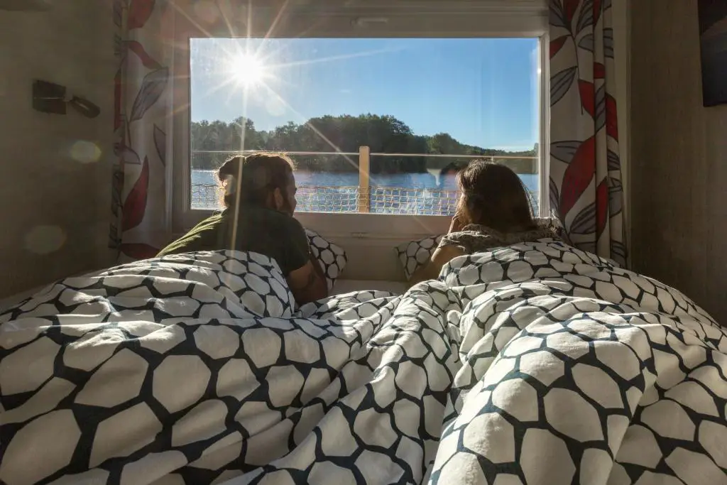 Un petit chemin secret vous conduira à travers bois jusqu’à l’embarcadère où vous attend votre barque à moteur électrique. La magie opère déjà et dès l’embarquement vous ressentirez le vent de l’aventure…