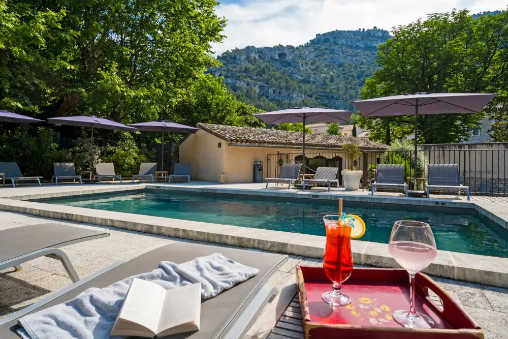 Pour pouvoir flâner tranquillement dans les charmantes ruelles du village et aller voir la source de la Sorgue sans la foule, le mieux est encore d’y séjourner. Nous avons trouvé l’hôtel idéal pour vous poser dans ce site exceptionnel. Bienvenue à l’Hôtel restaurant du Poète 3*, un hôtel de charme dans le Vaucluse qui bénéficie d’un emplacement de rêve. La Sorgue traverse le parc, la vue depuis votre chambre est juste sublime avec la rivière en contrebas et les montagnes alentours, la décoration délicatement provençale et intime vous plaira à coup sûr.