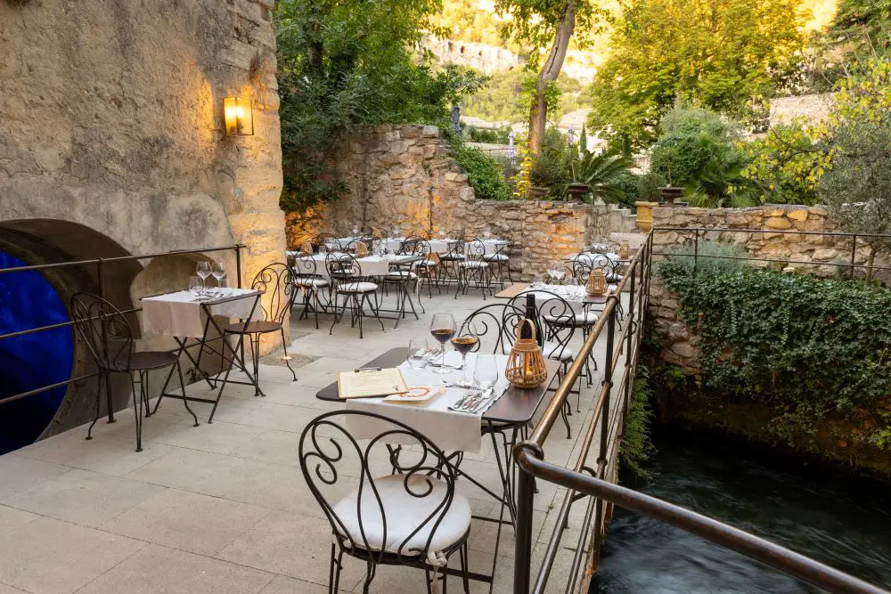 Installé au rez-de-chaussée de l’Hôtel du Poète, Le Bistrot est le restaurant incontournable à Fontaine-de-Vaucluse. Dans une salle contemporaine et chic, au charme provençal qui met en valeur les matières naturelles, installez-vous confortablement et profitez d’un moment gourmand et convivial. Les 30 places disponibles à l’intérieur sont complétées par l’équivalent à l’extérieur, sur les différentes terrasses côté jardin qui surplombent la rivière. Au bord de l’eau, vous déjeunez et dinez en profitant de la fraîcheur de la Sorgue et de la vue sur la piscine.