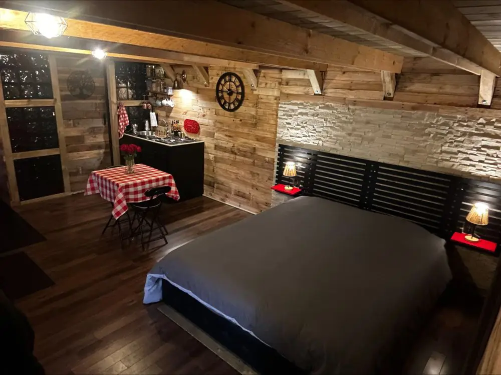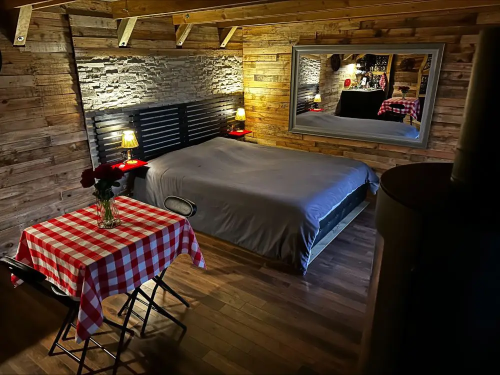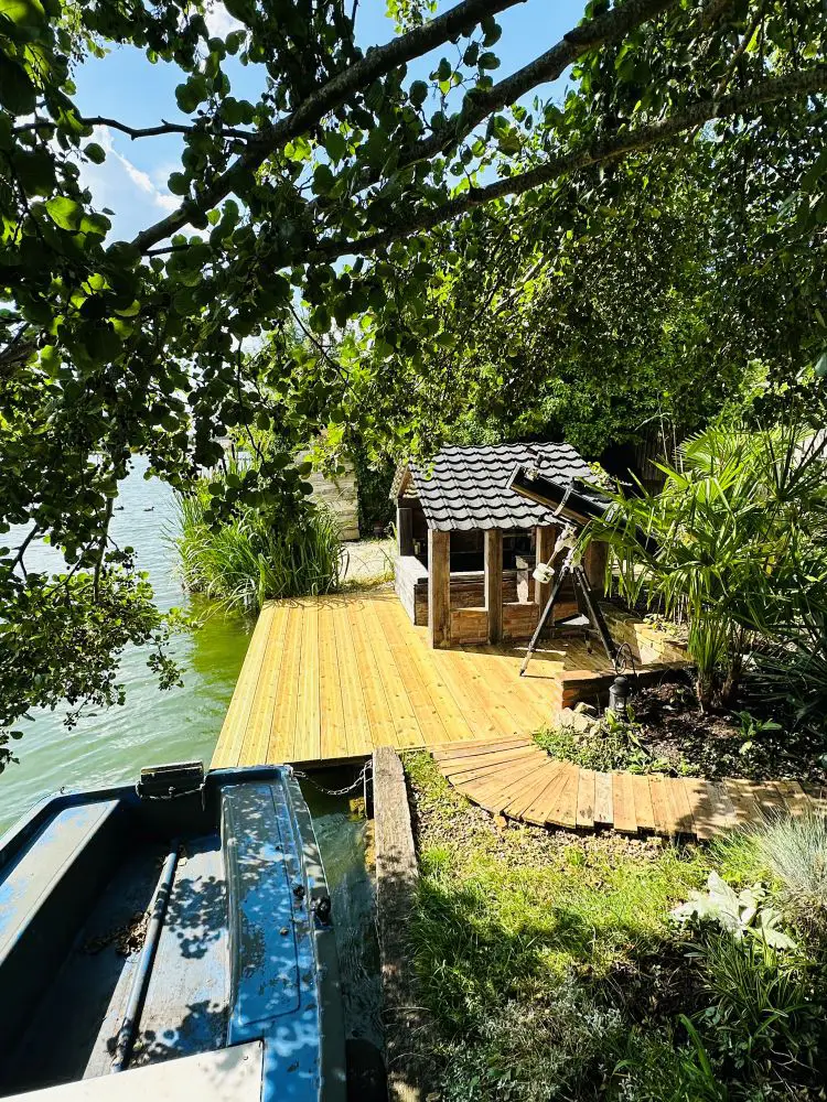 Il s'agit d'une cabane sur pilotis posée au-dessus d'un vaste plan d'eau. À l'intérieur vous trouverez une baignoire avec vue sur le lac, un coin cuisine, des toilettes et lavabo indépendants, un poêle à bois.