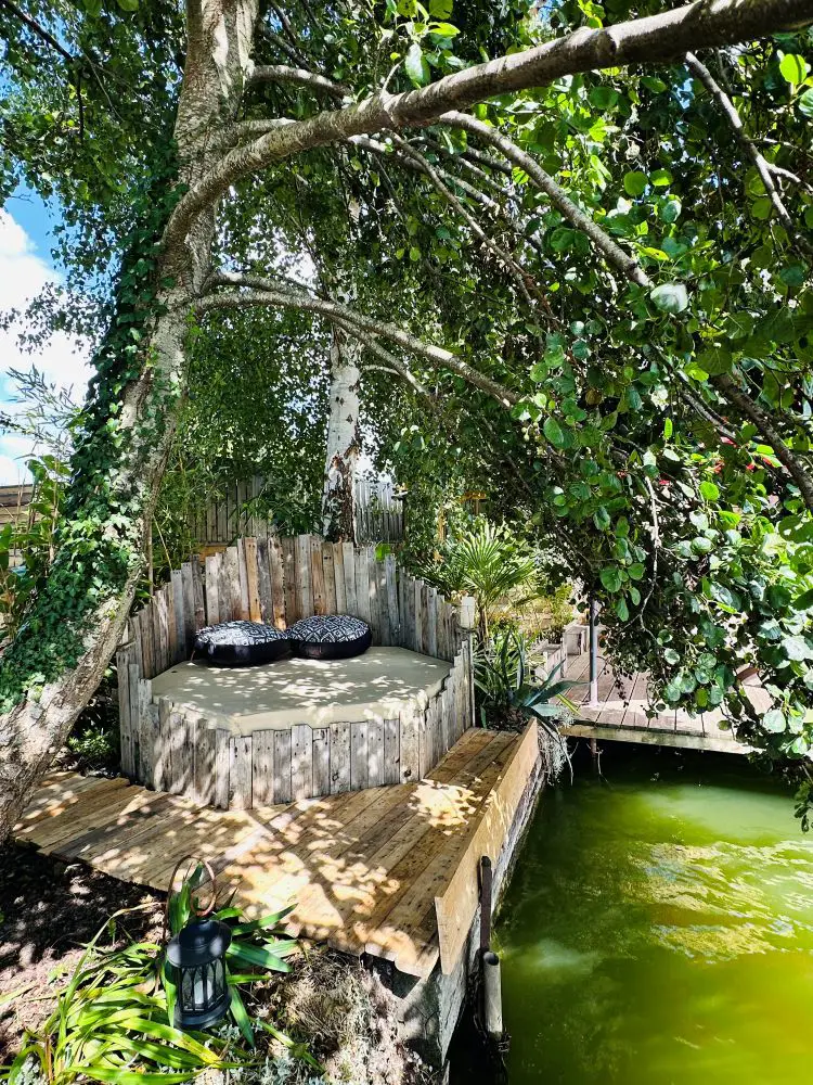 Dans le jardin en bord d'étang se trouve un bain nordique (1mx1m) à une température de 40 degrés en toute saison.